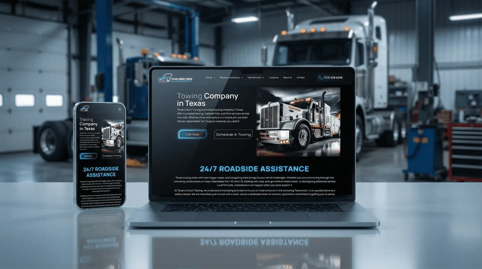 Texans Crown Towing was operating in a highly competitive towing market with inconsistent organic traffic and low visibility for emergency towing and roadside assistance searches. Despite offering reliable services, the website was not ranking effectively for high-intent keywords, resulting in missed calls and lost jobs.